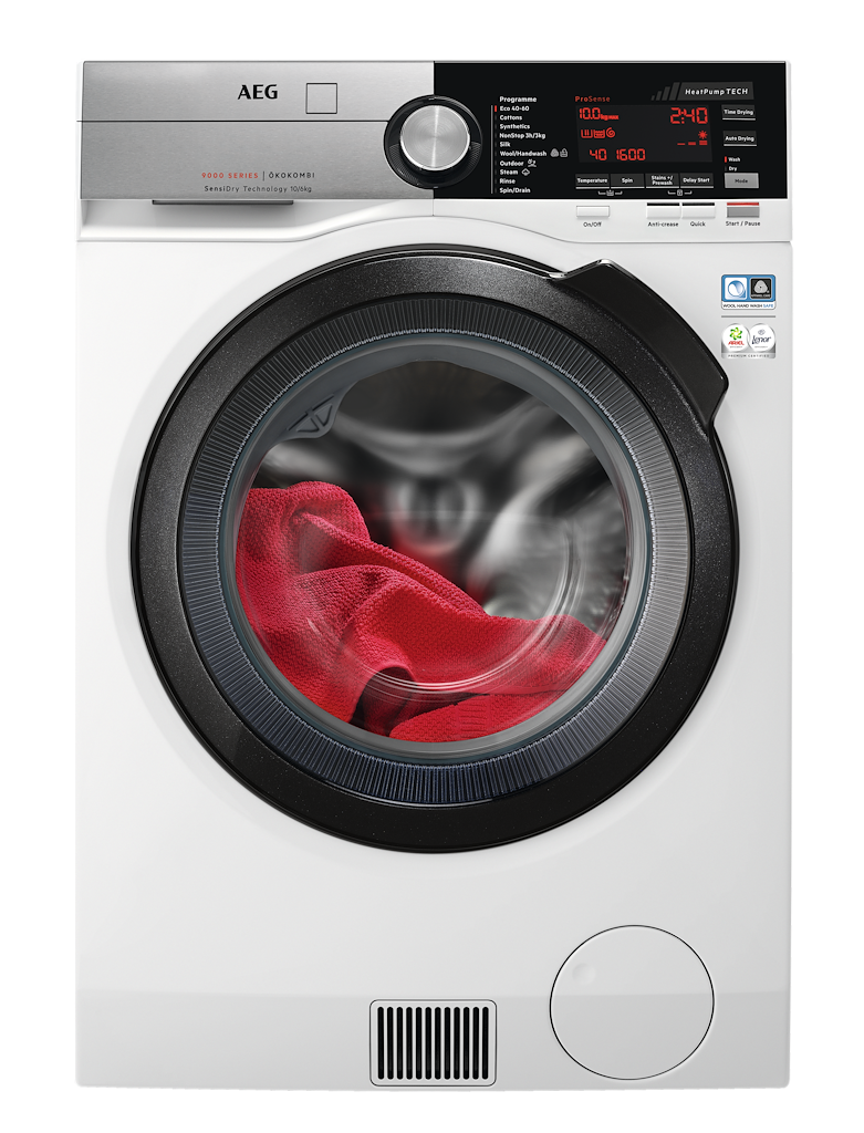 • The AEG 9000 Series washer dryer featuring the SensiDry® technology - world's first heat pump washerdryer which dries your garments at significantly lower temperatures