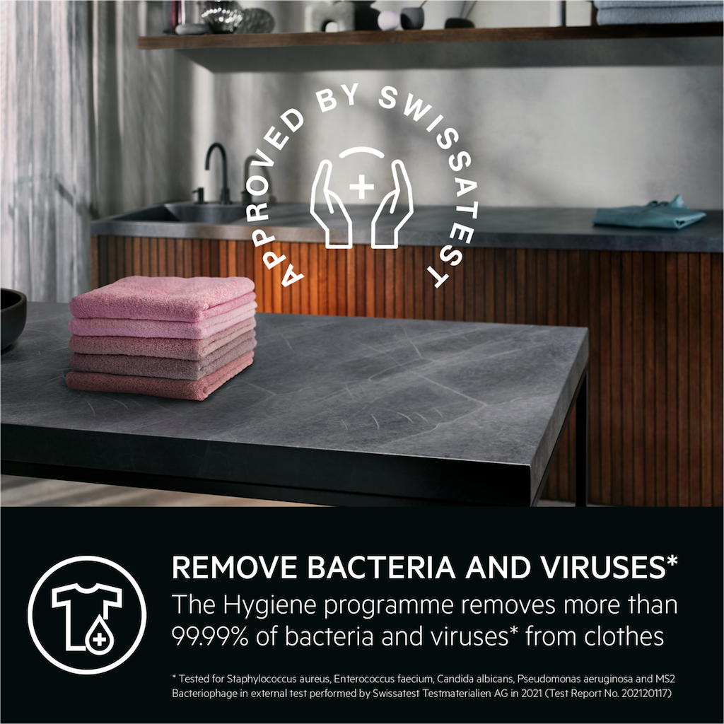 * Internal test with a 1 kg load on the steam programme vs the delicates programme.