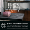 Garments refreshed*, wrinkles reduced with steam refresh