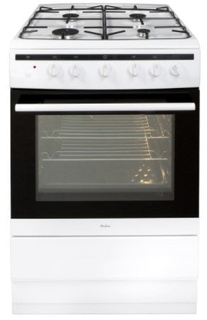 White Amica Free Standing Gas cooker 608GG5MSW. This A energy rated model comes with a 58 litres capacity. This Amica cooker has install dimensions of 60cm (width) x 90cm (height) x 60cm (depth). The 608GG5MSW model also comes with 4 number of burning zones, 1 cavity, Electric Grill, Electric control panel, an interior light and a manufacturer's warranty of 2 years for peace of mind.