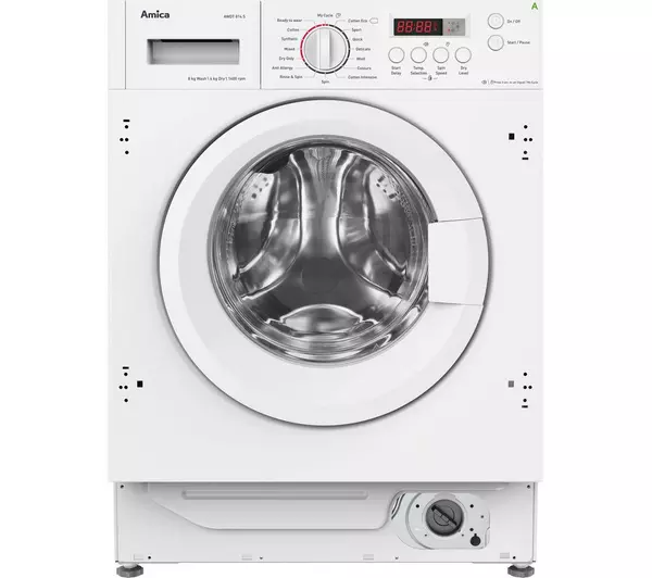 White Amica Built-in 1400rpm Washer Dryer AWDT814S, this E/E energy rated model comes with 8 kg drum capacity. This Amica washer dryer has install dimensions of 59.5cm (width) x 82.5cm (height) x 54cm (depth) and a washing noise level of 54dB, drying noise level of 62dB & spinning noise level of 78dB. The AWDT814S model also comes with 10 number of wash programmes and 6 number of drying programmes, Dial Display controls, adjustable drying temperatures, spin speed options, delay timer, wide opening door, control panel lock, daily quick programme, economy wash, quick wash, extra spin, wool programme, delicate wash, allergy care, intensive cycle, cotton programme, synthetics, and a manufacturer's warranty of 2 years for peace of mind.