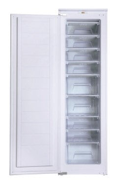White Amica Built-in Freezer BZ226.3. This F energy rated model comes with 198 litres freezer net capacity. This Amica freezer has install dimensions of 54cm (width) x 177.6cm (height) x 54cm (depth) and an operating noise level of 41dB. The BZ226.3 model also comes with 9 number of drawers; an ice cube tray; reversible door hinges; temperature adjustable freezer; open door warning signal and a manufacturer's warranty of 2 years for peace of mind.