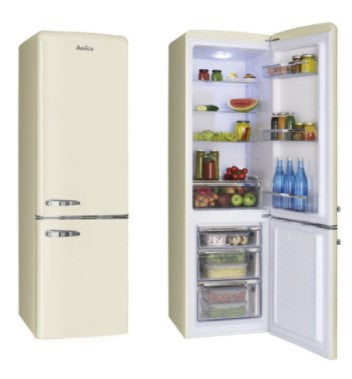 The Amica FKR29653C Free-standing fridge freezer in Cream is the perfect addition to your kitchen; with a 70:30 split between refrigeration and frozen storage for a total capacity of 244 litres. The Amica features 3 freezing drawers for frozen goods and 4 shelves inside the refrigeration section. The FKR29653C also gives more handy storage options with a bottle shelf for saving space when keeping wine and other drinks; an egg tray; salad crisper drawer for keeping fruit and vegetables fresher for longer and an ice cube tray. Additional unique features of the Amica fridge freezer include interior light; temperature adjustment settings.. When installing this model it has dimensions of 55cm (width) x 181cm (height) x 61.5cm (depth).The Amica FKR29653C is F energy rated and has a running noise level of 43dB. Amica provides you with with a manufacturer's warranty of 2 years for added peace of mind on your new refrigerator.