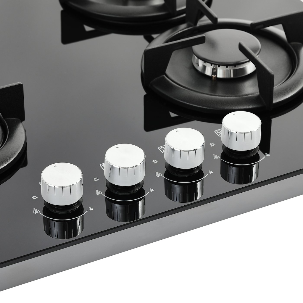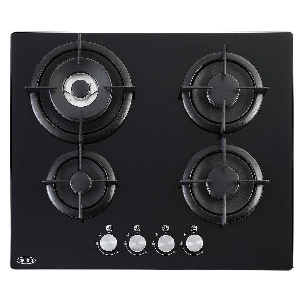 60cm gas through glass hob with powerful 3.6kW wok burner and ribbon iron pan supports