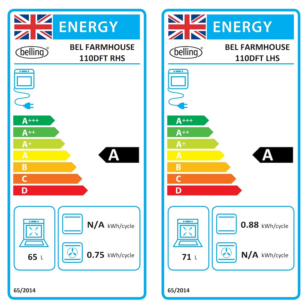 Silver Belling Dual Fuel Range Cooker Farmhouse 110DFT S / 444444146, this A/A energy rated model comes equipped with 71 litres capacity, 1 number of cooking programme, 7 number of burners and 4 number of cavities. This Belling range cooker has install dimensions of 109.6cm (width) x 93cm (height) x 60cm (depth). The Farmhouse 110DFT S / 444444146 model also comes with wok burner, electronic timer, electric grill fuel, dial control panel and a manufacturer's warranty of 1 year for peace of mind.