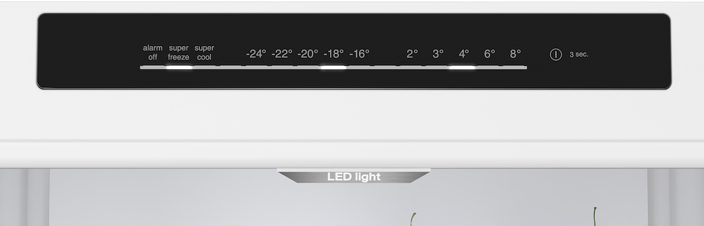 - Freezer malfunction warning signal: optical and acoustical warning system