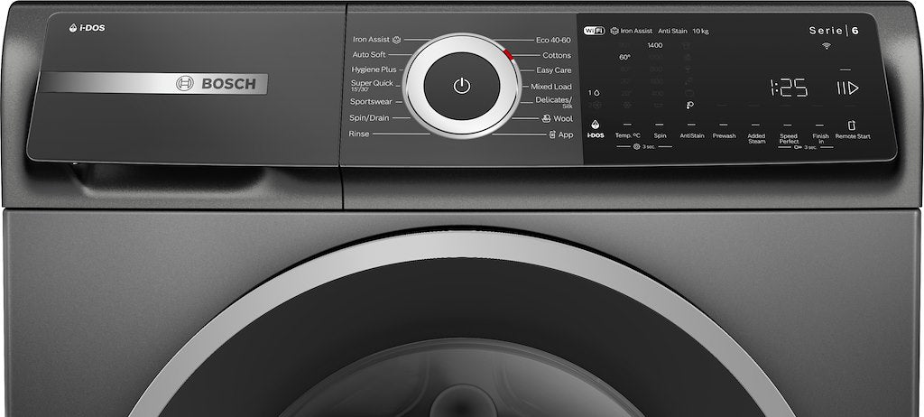 The i-DOS automatic dosing system makes each wash as efficient as possible, just fill the detergent and softener compartments and the i-DOS sensors will dispense the right amount of detergent and water for each load, saving detergent and preventing unnecessary rinsing.