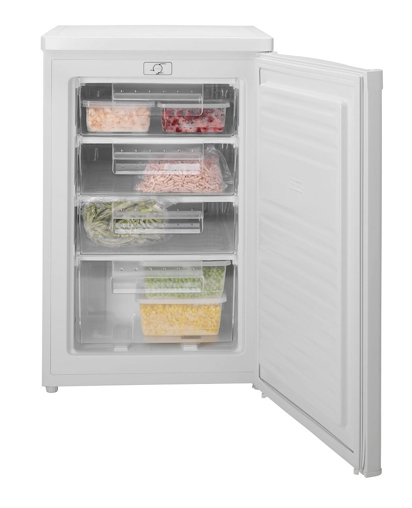 White Candy Free standing table top Freezer CCTU582WK. This F energy rated model comes with 82 litres freezer net capacity. This Candy freezer has install dimensions of 55cm (width) x 85cm (height) x 58cm (depth) and an operating noise level of 43dB. The CCTU582WK model also comes with 4 drawers, temperature adjustable freezer, and a manufacturer's warranty of 1 years for peace of mind.