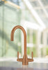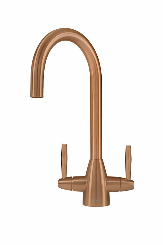 Caple AVE2/CO Dual Control Tap. Features: Monobloc design. Solid stainless steel tap with black steel finish. Minimum bar pressure required : 0.5. Quarter turn ceramic valve. Dual flow. DIMENSIONS: Worktop Cut Out 35mm required. FINISHES: Copper.