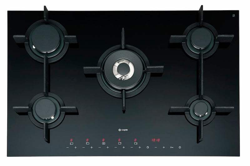 Black Caple Gas Hob C981G. It has 5 total number of positions and 9 power levels. This Caple Hob has install dimensions of 79cm (width) x 5.5cm (height) x 51cm...