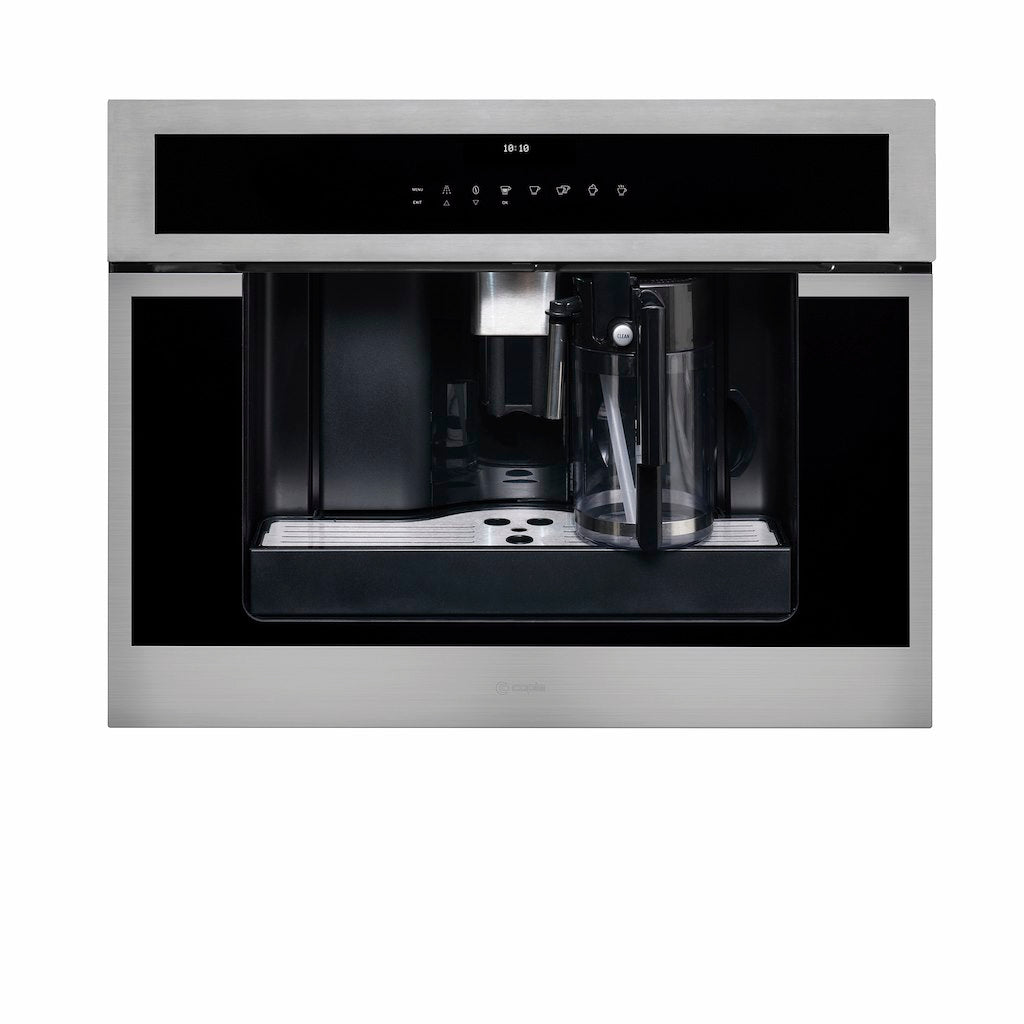 Caple CM465SS Sense Built In Coffee Machine. Fully automatic, Full touch control with white LCD display, Coffee bean grinder, Coffee grinder adjustment to modify how fine the coffee beans are ground [13 settings], 30 Auto programmes, Programme machine to switch-on and warm up at set time.