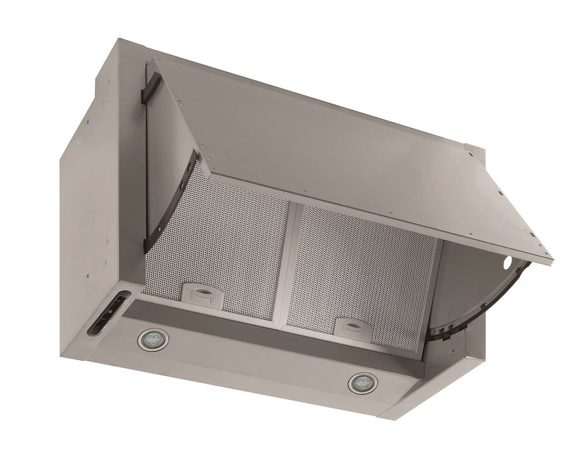 Silver Caple Integrated hood INCH, Caple hood has install dimensions of 60cm (width) x 38cm (height) x 27cm (depth) and an operating noise level of 64dB. The INCH model also comes with and a manufacturer's warranty of 2 years for peace of mind.
