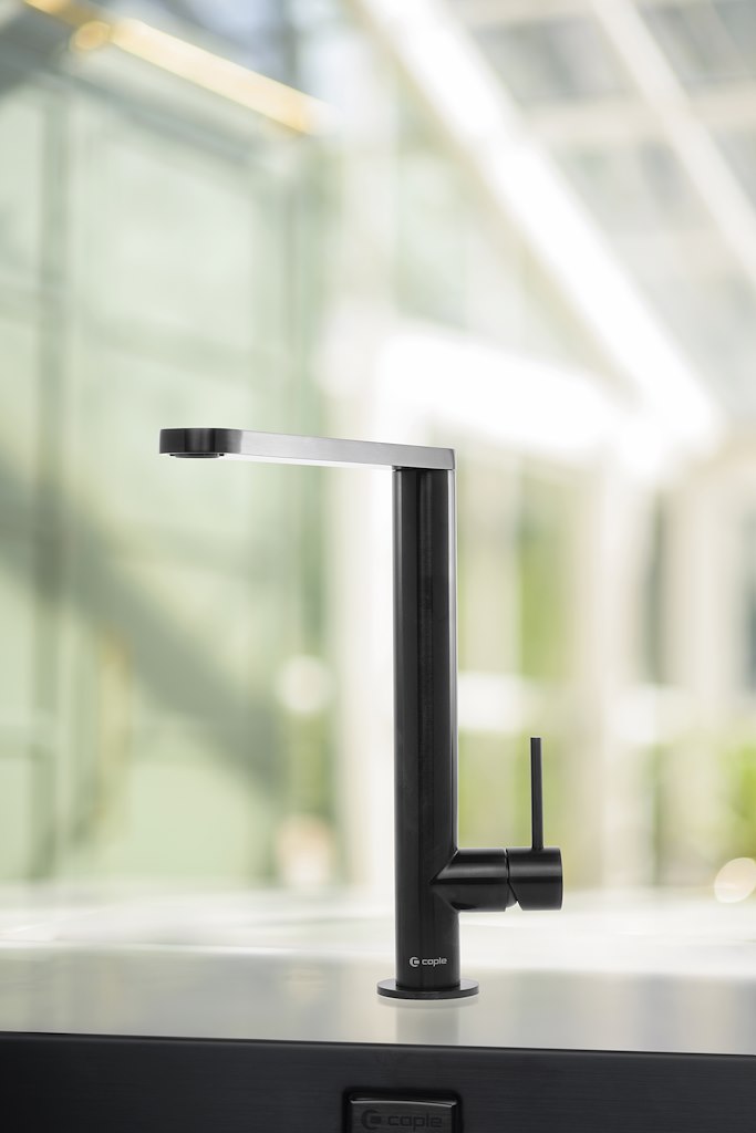 Caple KAR/BS Single Control Tap. Features: Solid stainless steel with black steel finish. Single lever design. Minimum bar pressure required: 0.5. Single lever ceramic valve. Single flow. DIMENSIONS: Worktop Cut Out 35mm required. FINISHES: Black Steel.