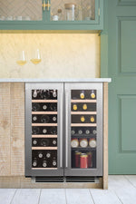 Black Caple Classic Undercounter Dual Zone Wine Cabinet WI6234 , this WI6234 model comes with B energy rating. Caple Wine Cooler has install dimensions of 60.5cm (width) x 82.5cm (height) x 58.3cm (depth). This WI6234 model has 38 bottles capacity, stainless steel door, No-frost compressor , Dual side-by-side temperature zones, Touch controls and white LED display, Vibration free, Adjustable height, Beech shelves, 5 Sliding shelves, 2 Humidity control water tanks, 100% CFC/HFC free and a manufacturer's warranty of 2 years for peace of mind.