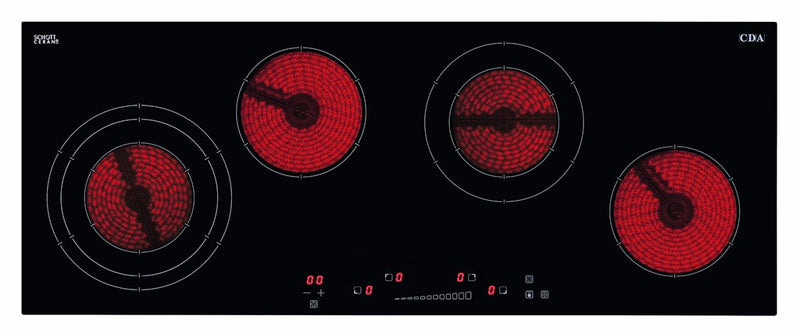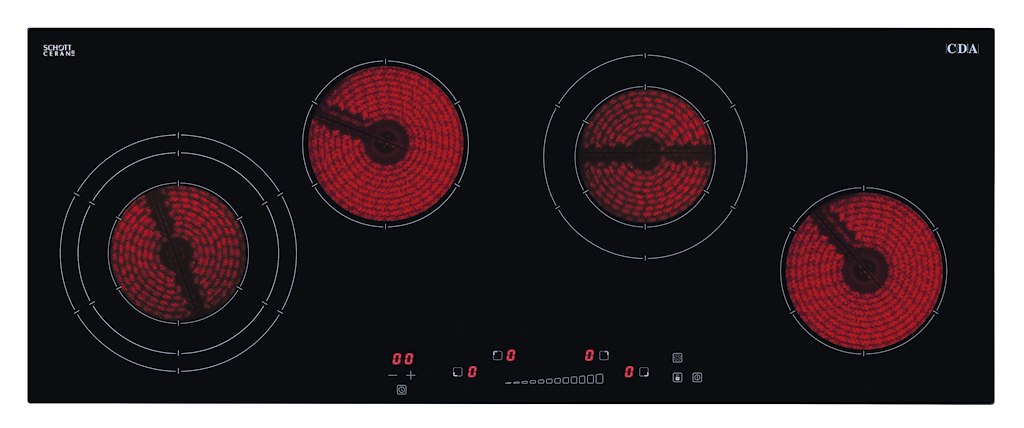 Frameless CDA Electric Hob HC9606FR. It has 4 total number of positions and 9 Power Levels. This CDA Hob has install dimensions of 90cm (width) x 4.8cm (height) x 35cm (depth). The HC9606FR model also comes with timer, and a manufacturer's warranty of 5 years for peace of mind.