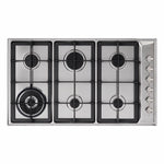Stainless steel CDA Gas Hob HG9350SS. It has 5 total number of positions and Power Levels. This CDA Hob has install dimensions of 86cm (width) x 3.5cm (height) x 50cm (depth). The HG9350SS model also comes with Flame failure safety device and a manufacturer's warranty of 5 years for peace of mind.