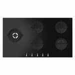 The HVG971BL is minimal yet stylish giving a polished feel within the kitchen, with tempered black Glass which is shatterproof and easy to clean, along with black cast iron pan supports to match perfectly. The hob feature 5 burners including a triple ring/Wok Burner