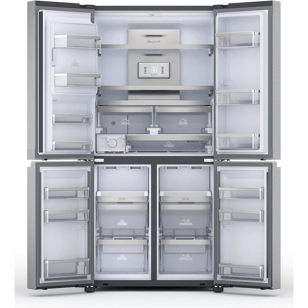 The Hotpoint HQ9I MO1L UK Active Four-Door American Fridge Freezer in stainless steel offers you a helping hand with flexible storage space, generous capacity and food preservation at its heart. It comes with thoughtful technology, such as Active Oxygen, for long lasting food freshness through reducing up to 99% of bacteria and viruses*. Triple No Frost technology is our best solution to keeping your fridge and freezer frost free. It includes three independent evaporators that circulate air around your fridge, freezer and convertible zone, so you're never left with soggy salads or the need to defrost the appliance. It features Active Fresh technology, that constantly monitors the temperature inside as well as an ice and water dispenser.