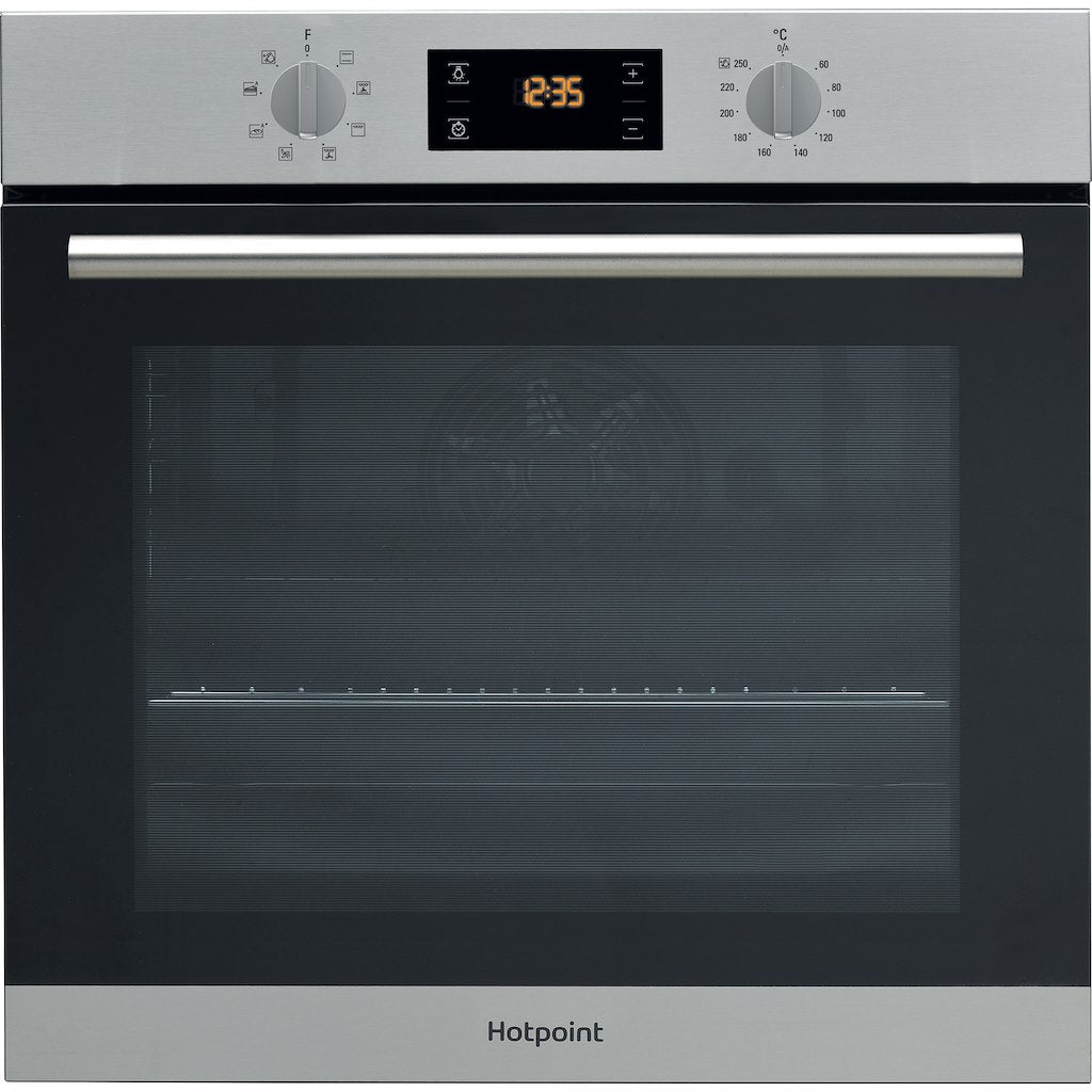 Cook confidently with the Hotpoint Class 2 SA2 540 H IX built-in stainless steel oven that protects you from any cooking mishaps so you can whip up delicious meals simply. Its Multiflow technology ensures your food cooks evenly regardless of which shelf you use. The Electronic Temperature Control minimises temperature swings by using intelligent sensors to maintain a consistent temperature throughout the entire oven. Harness the power of steam with the 35-minute self-cleaning steam cycle that makes it easy to clean your oven, as it loosens grease and food residue so you can simply wipe it clean. This built-in oven features a convection bake function for cooking on two shelves simultaneously, and a titled grill for easy cleaning that unhooks so you can thoroughly clean above it. Each and every one of your dishes will taste so good, your friends and family will keep coming back time and time again.