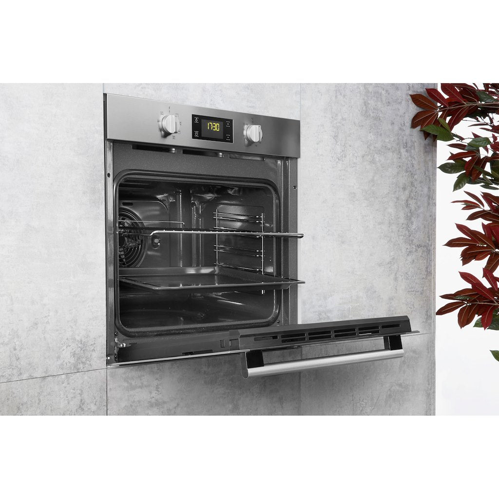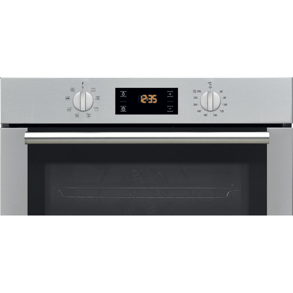 Do more in your kitchen with the Hotpoint Built-In Oven in classic stainless steel (SA4 544 H IX). Featuring multiflow Technology, a new style of convection system creates an all-enveloping heat flow which pushes heat into every inch of the oven cavity for consistently even, delicious dishes every time – whichever shelf you’re using. Ideal for ensuring perfectly risen cakes and breads, plus reducing cold spots in your favourite dishes. Easily operated through the electronic control, with seven traditional and two automatic functions including BBQ, Baking and Eco, the Hotpoint Built-In Oven provides you with the ideal temperature for cooking your favourite ingredients and meals. A gift for oven cleaning, this model uses exclusive Hydro Clean Technology – a short 35 minute cycle which harnesses the power of steam to remove fat and food residue. Simply wipe with a damp cloth after the cycle completes to restore the like-new appeal. Complementing the Hydro Clean system, the Tilting Grill unhooks to slide downwards allowing you easy access to clean the oven roof, whilst to take care of the exterior of your oven - the special Anti-Fingerprint coating dispels the grubby marks from regular opening and closing the oven door. For households that love good food without fuss or complication, the Hotpoint Build-In Oven (SA4 544 H IX) marries 71L of capacity with great time saving tech.