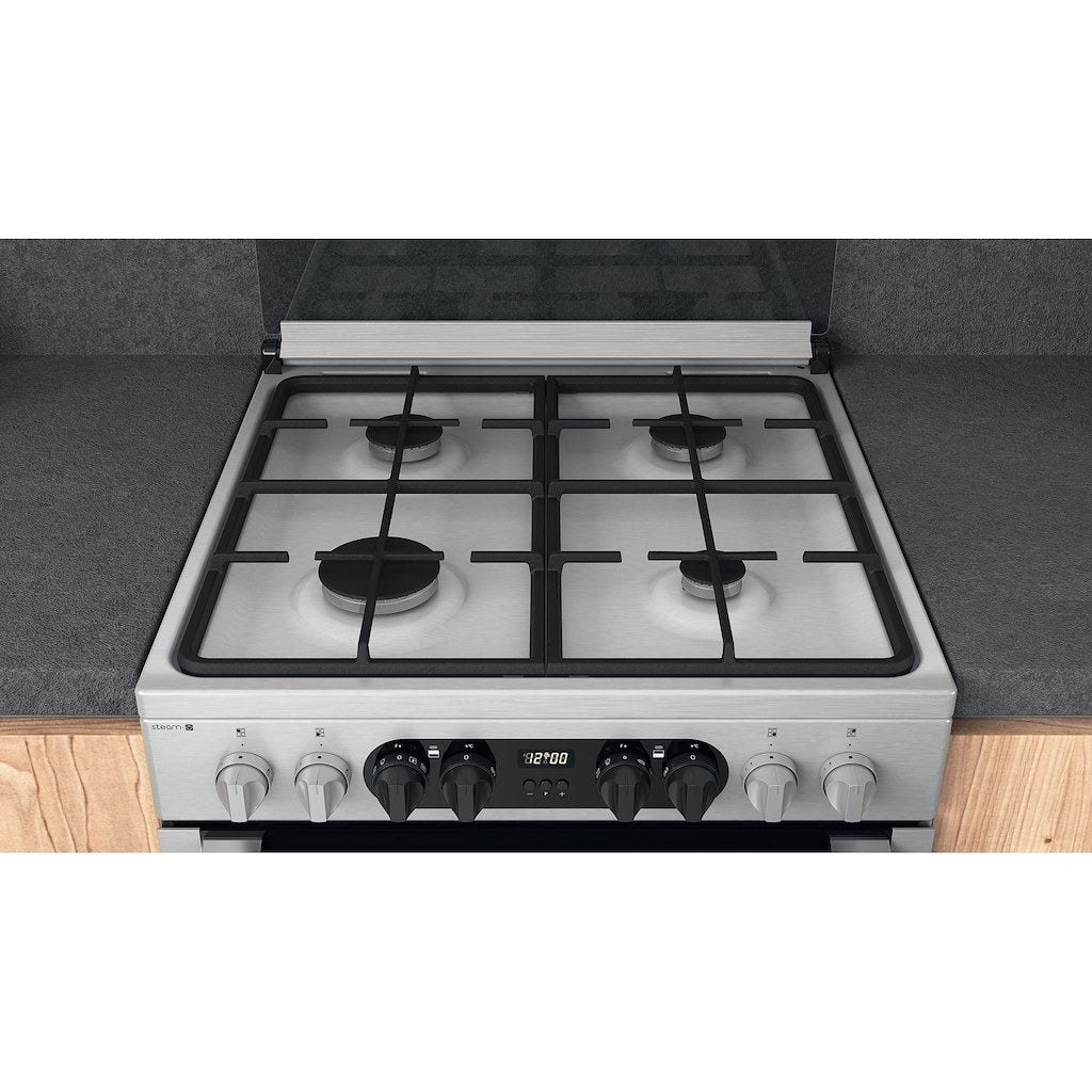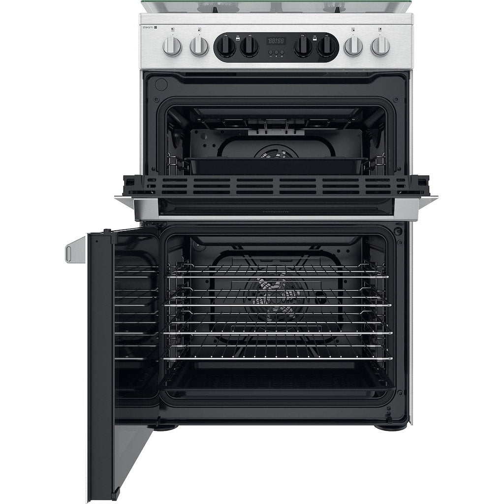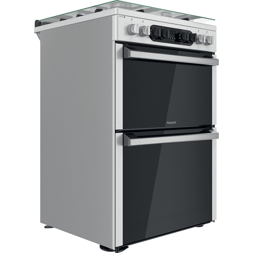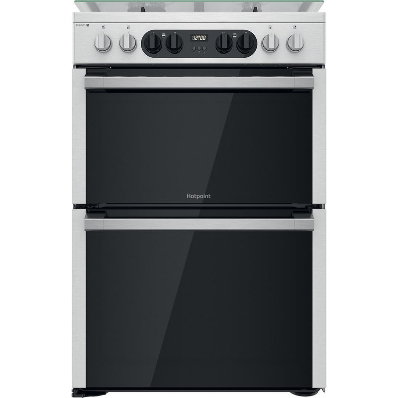 Giving you countless cooking possibilities, choose the only cooker on the market that features two full fan ovens. The Hotpoint freestanding HDM67G8D2CX dual fuel 60cm cooker in stainless steel cooks super speedy meals in the top fan oven, saving you time and energy, and you'll have all the space you need to cook for the family in the bottom fan oven. It features Hotpoint's Multiflow technology, so you can place your food on any of the six shelves and still achieve a consistent bake, as heat is distributed to every corner of the cavities. Succulent on the inside, crisp on the outside, the Steam function enables you to improve your cooking results by adding humidity for crispy results - an excellent tool for bread, meat and fish. At a glance, the Cook Guide assists you in choosing the perfect temperature for the kind of dish you're preparing so you can enjoy perfectly cooked meals. Enjoy direct control and feedback from both ovens with the easy and intuitive Double Display, that comes with a display timer so you can set the ovens to work independently or together. Perfect for when you need two meals done at the same time.