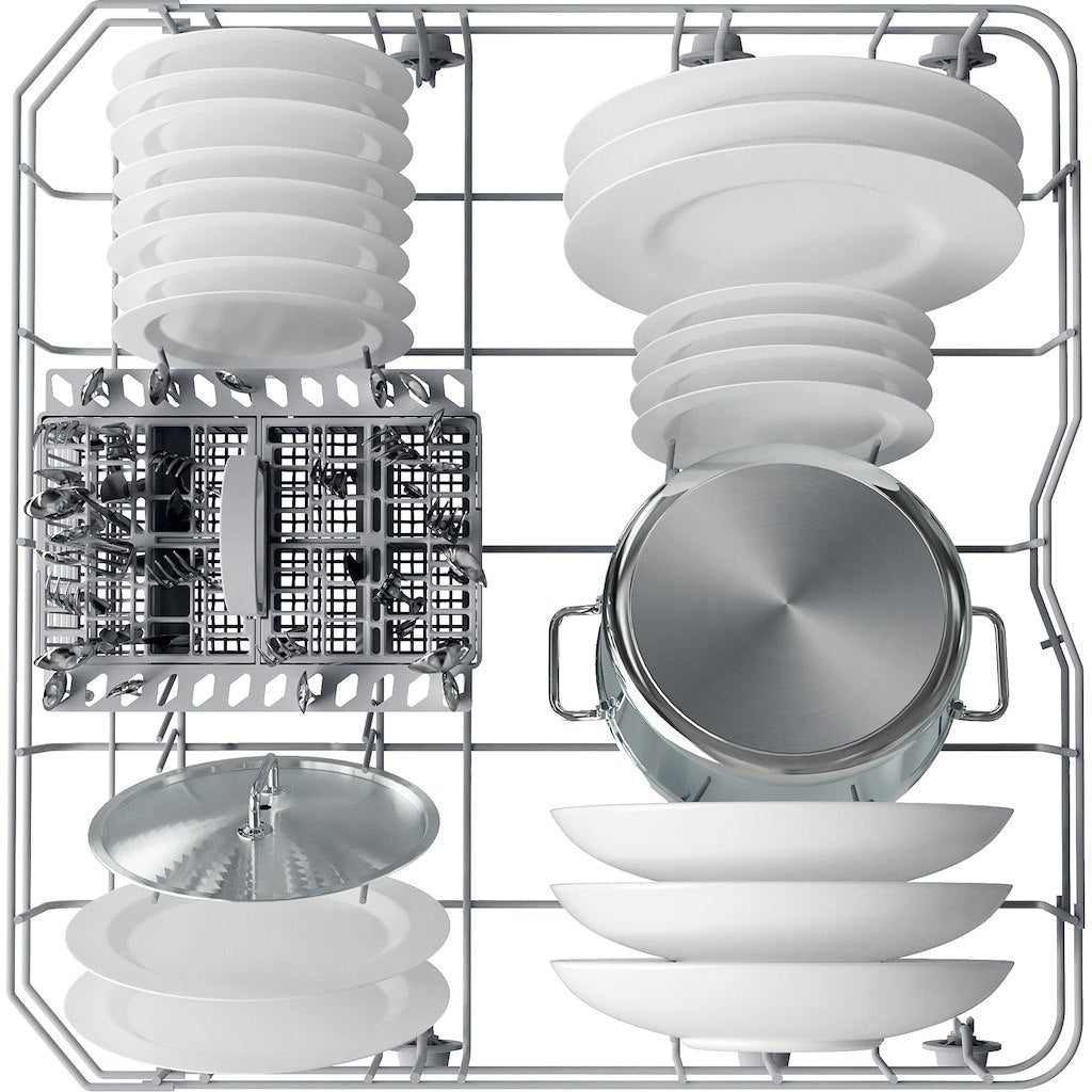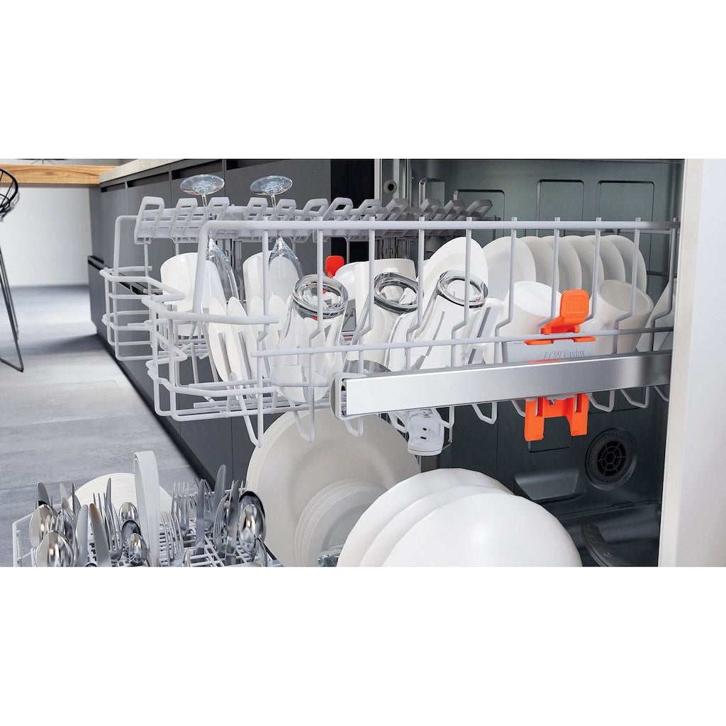 Thanks to the Hotpoint freestanding HFC 2B19 UK N dishwasher in white, you can be confident that your tableware will be spotless and squeaky clean. If you're in a hurry, the 30-minute quick wash is perfect for washing lightly soiled dishes, a time-saving option for when you're in a rush. It also has an intensive cycle for tackling stains and burnt on food residue from pans and saucepans. By choosing the Eco wash cycle, count on Hotpoint to clean your crockery as effectively as a regular cycle, saving energy and water. Using the delay timer function, you can schedule the dishwasher's start time for up to 24 hours, allowing you to set your dishwasher to start, even while you are not at home. This quiet dishwasher has 13 place settings, including an upper 3rd basket that gives you total flexibility to load your crockery without taking space up in the lower basket. Take a load off your mind, ditch the dishcloth and leave the dishes to us.