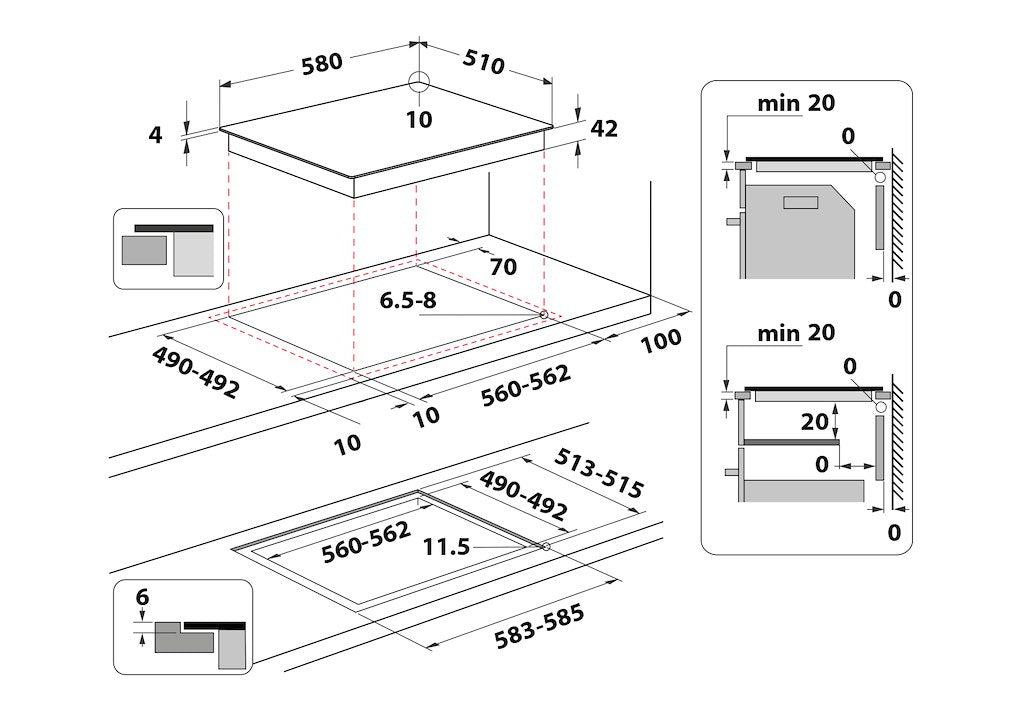 • Dimensions: W:580.0 H:46.0 D:510.0 mm