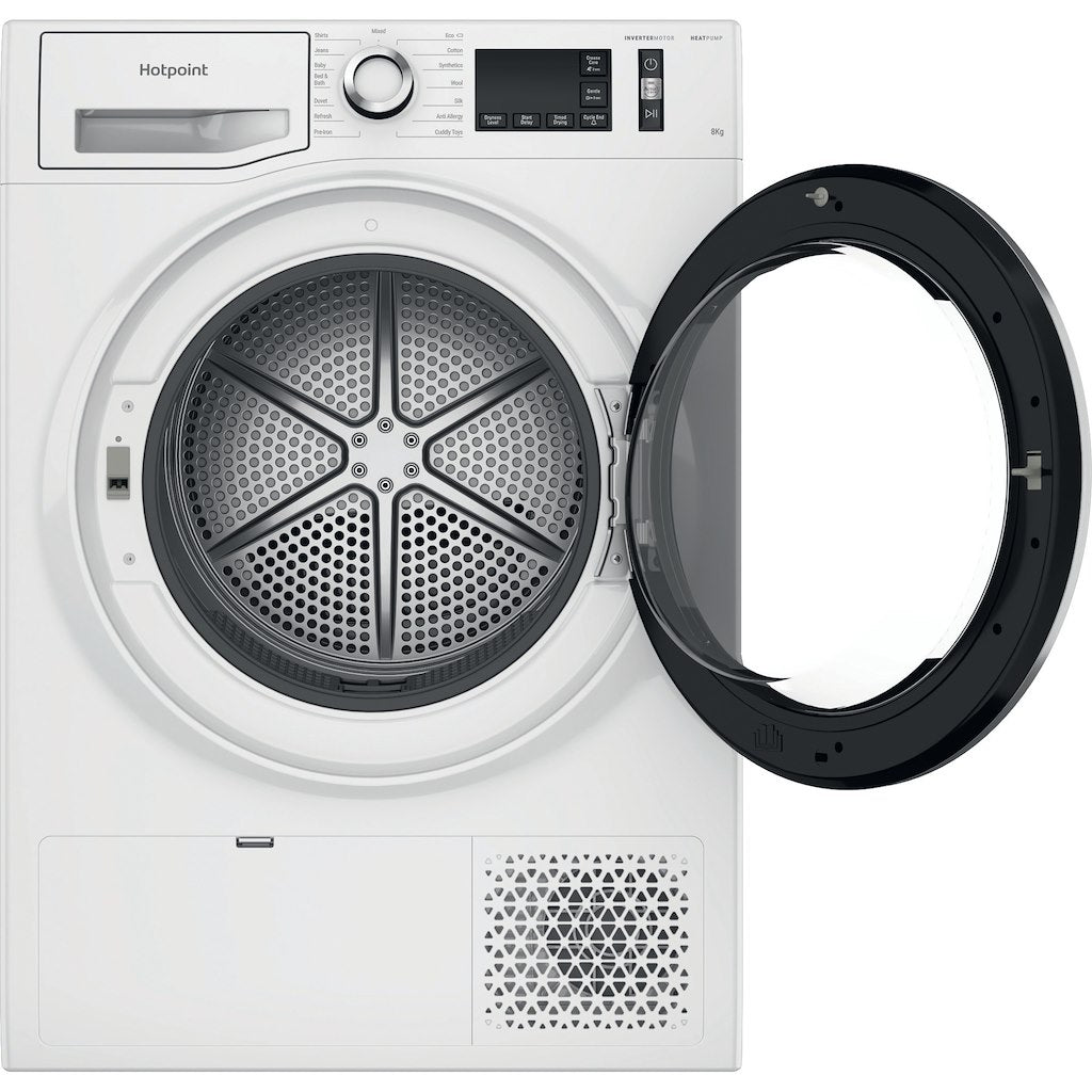 Dedicated to caring for the fabrics your love, the Hotpoint ActiveCare NT M11 8X3XB UK Heat Pump Tumble Dryer combines a family-sized 8kg capacity with programs devoted to prolonging the vibrancy in your clothes, and an A+++ Energy Rating to save money.