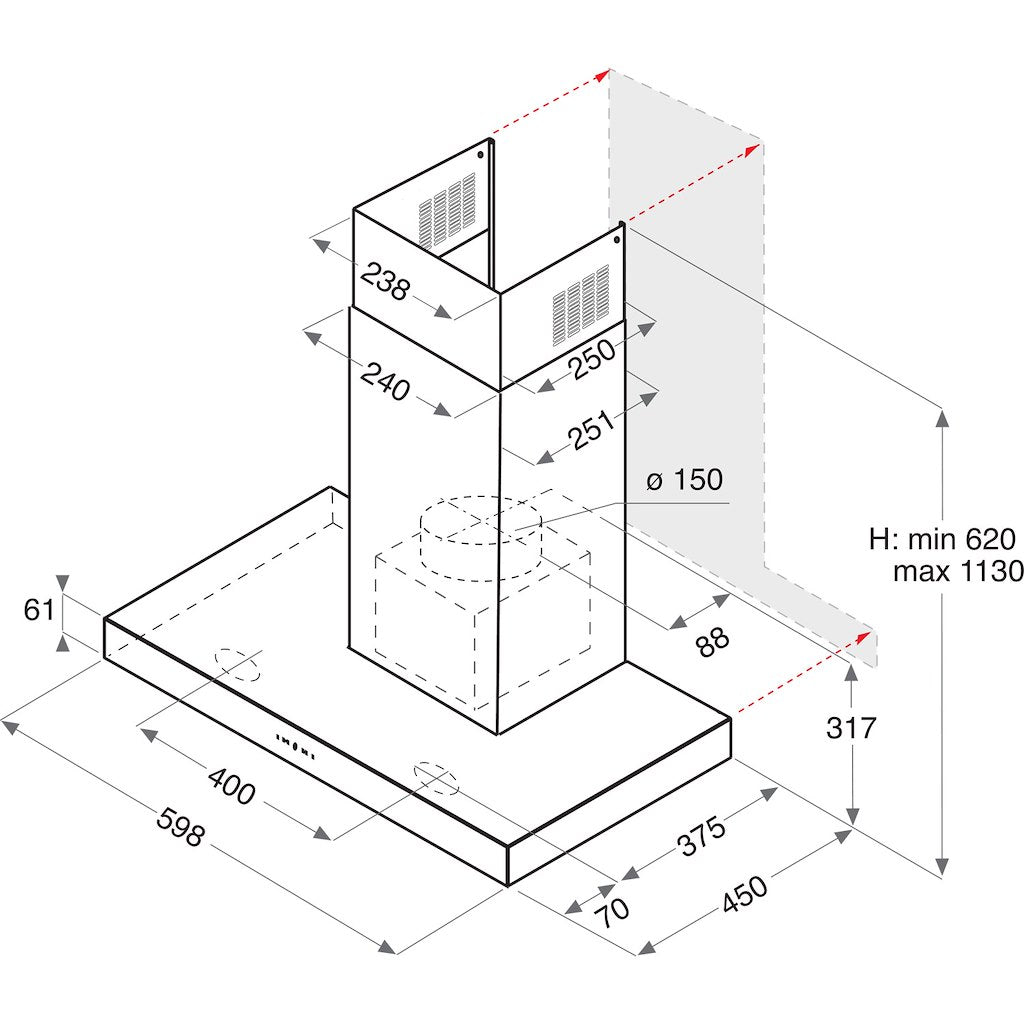 This Hotpoint wall mounted Cooker Hood features: between 60cm and 90cm wide appliance. An outstanding cooker extractor fan, ensuring a fresh, grease-free cooking environment. New design ensuring extra silent performance....
