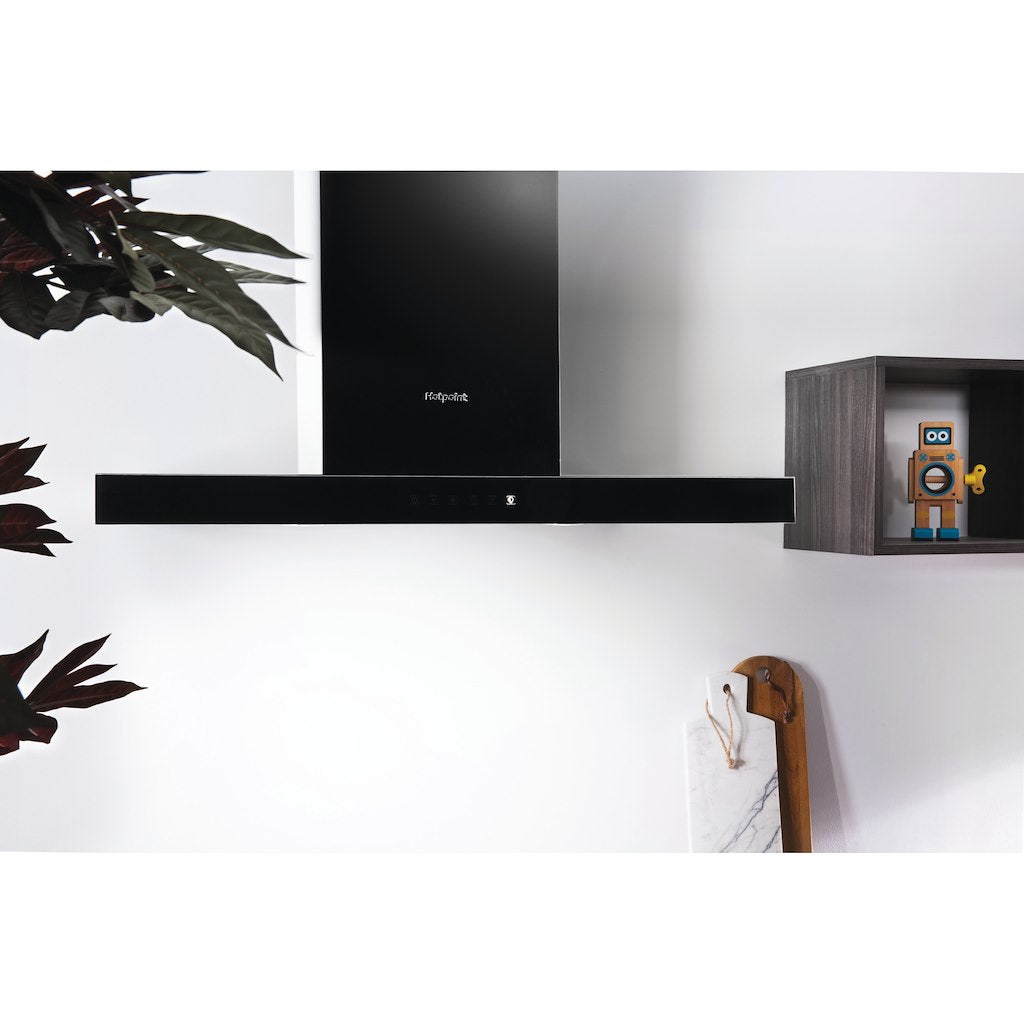 This Hotpoint wall mounted Cooker Hood features: between 60cm and 90cm wide appliance. An outstanding cooker extractor fan, ensuring a fresh, grease-free cooking environment. New design ensuring extra silent performance. LED lights for ideal lighting. Dishwasher-safe, washable stainless steel grease filters.