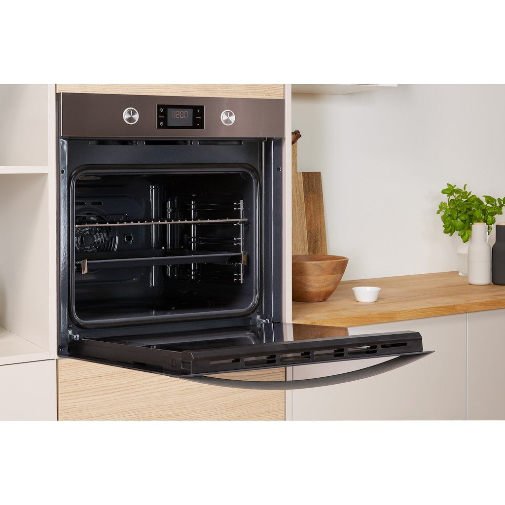 The Indesit Aria KFW 3841 JH IX UK is a sleek and modern design that complements your kitchen’s décor while bringing a huge 71L of cooking space, A+ energy rating and host of clever technology to help you cook and clean with time-efficiency.