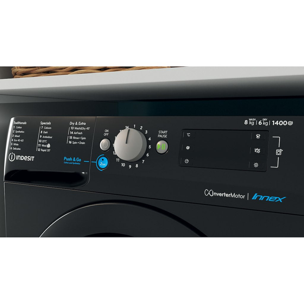 Indesit BDE86436XBUKN Washer Dryer - 8kg Wash 6kg Dry - Black (Discontinued)
