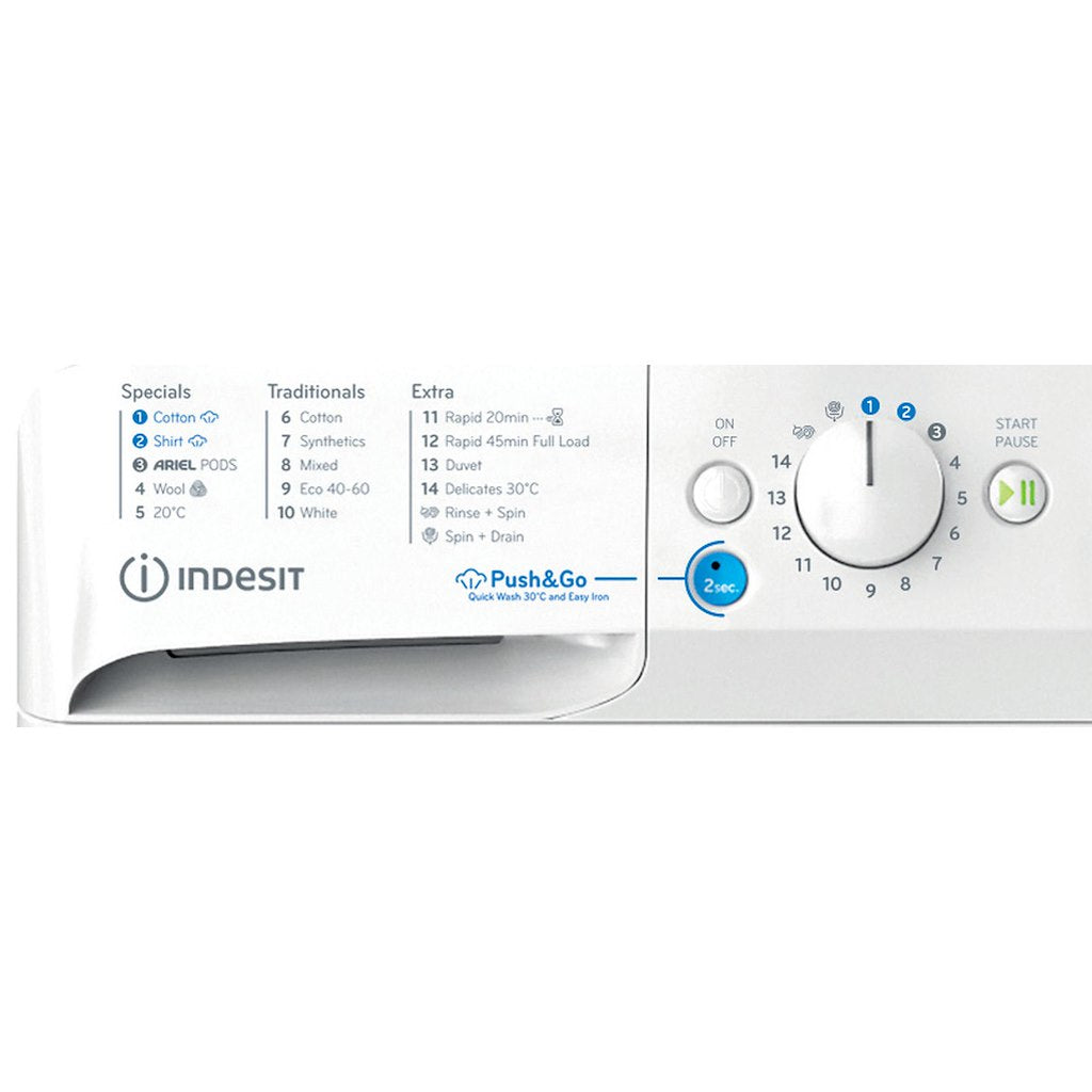 This Indesit freestanding front loading Washing Machine features: a fast, resource-efficient 1400 revolutions per minute spin speed. White colour.