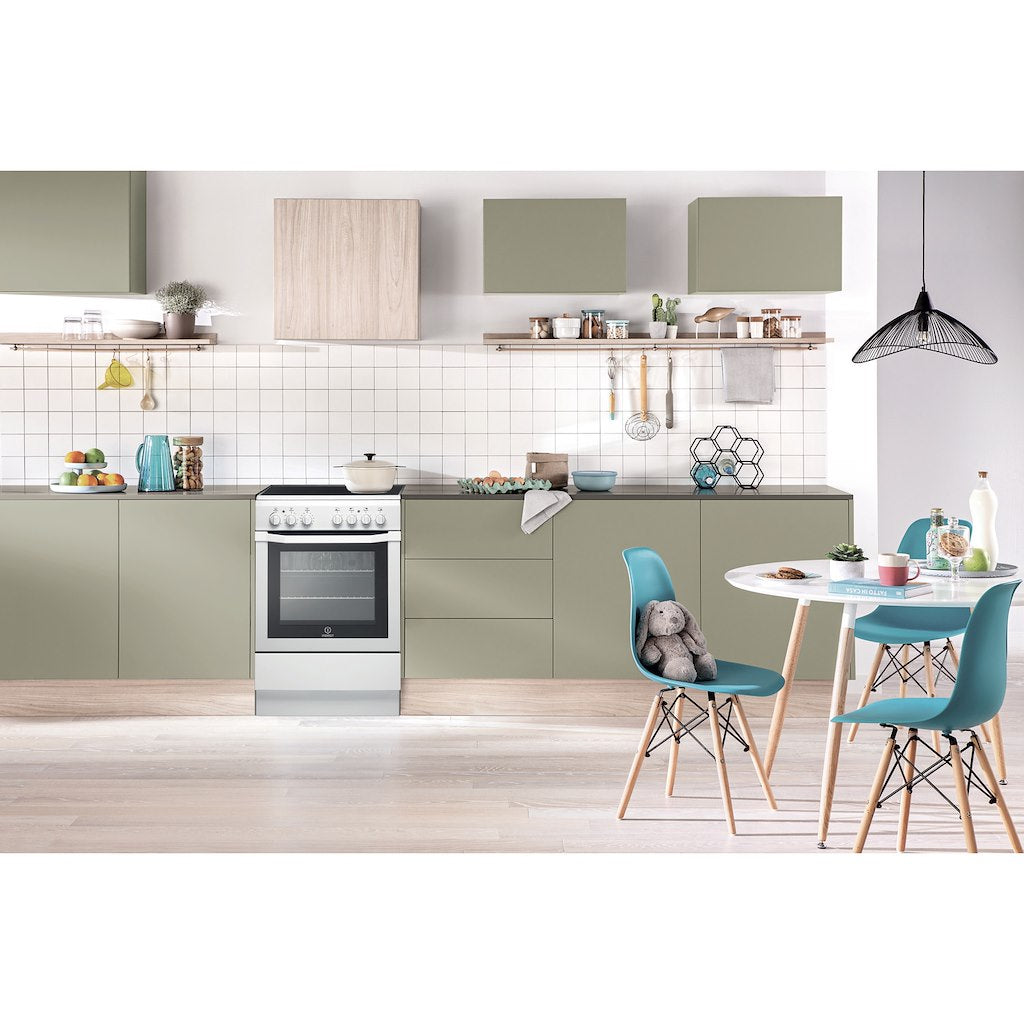 This Indesit freestanding 60x60 Cooker features: 4 radiant plates. White colour. Electric power supply. 60cm width.