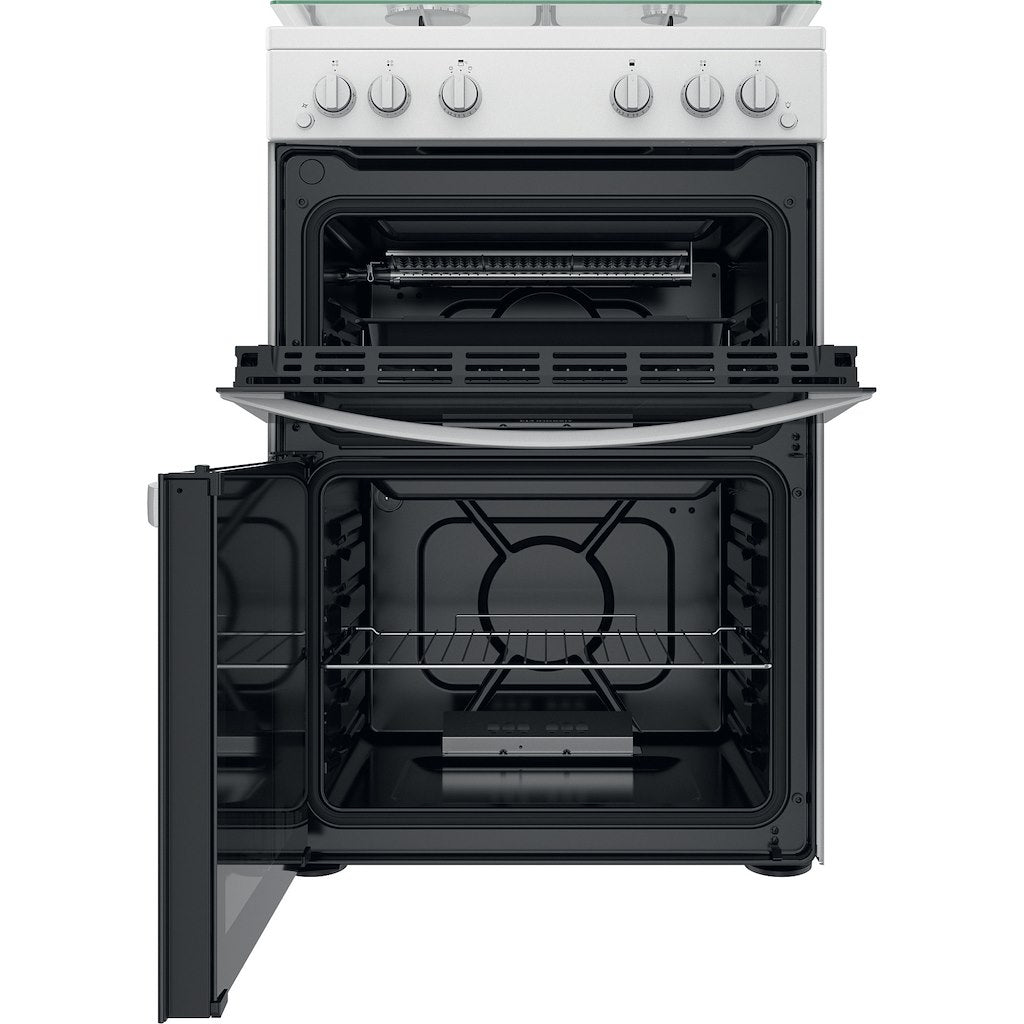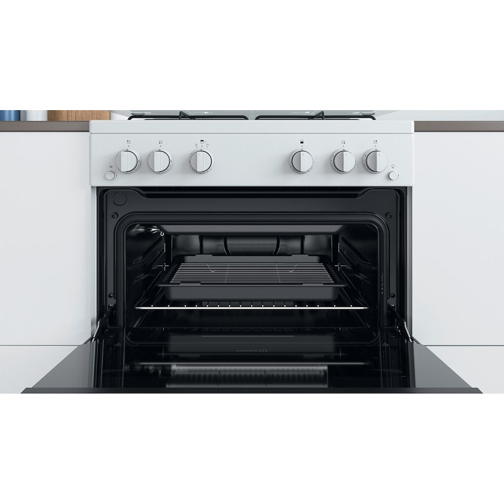 This Indesit freestanding 60x60 double cooker features: 4 gas burners. White colour. Gas power supply. 60cm width.