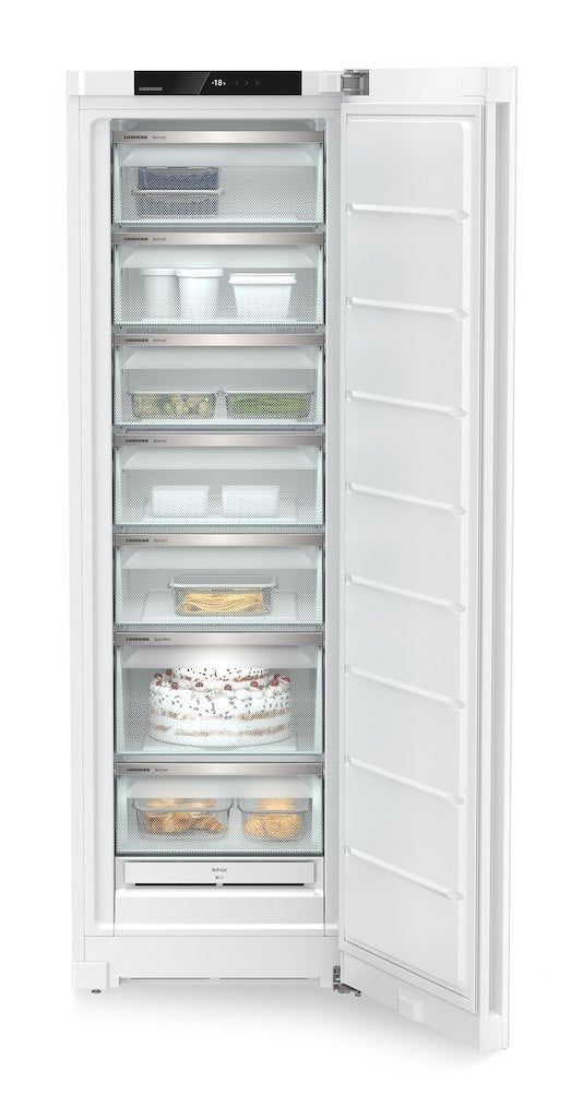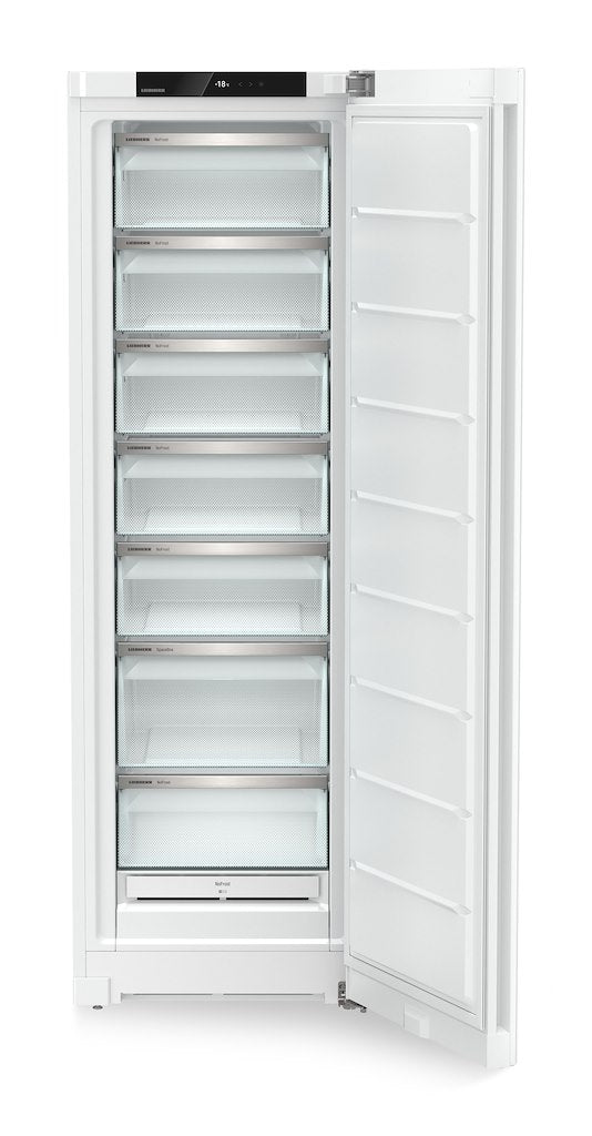 Liebherr FNe5227 Freestanding freezer is the perfect new addition to your home. With NoFrost allowing your freezer to operate in low room remperatures. FrostProtect guarantees special depth temperature suitability down to -15 °C. This means that even if the room temperature drops below +10 °C, Liebherr freezers continue to operate in the usual energy-saving manner. with fast freeze and 4 freezer draws this is the appliance for you. Our touch and display system and with smart device capabilities this appliance will be changing the way you freeze forever.
