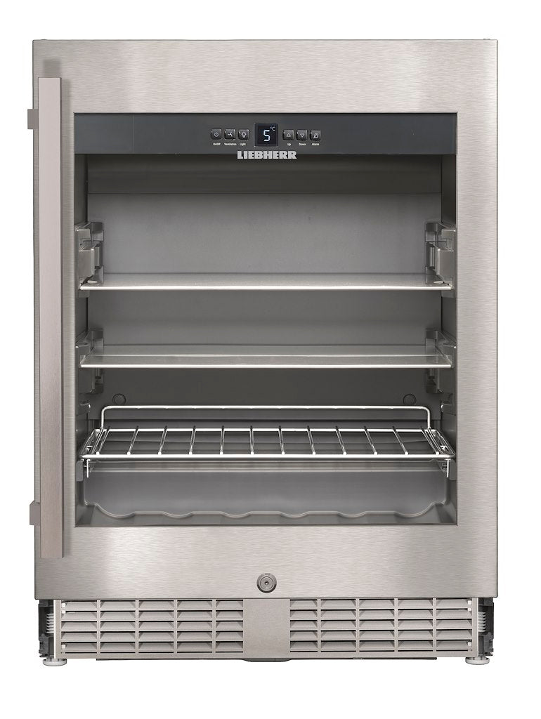 Liebherr built-in UKes1752 wine cabinet has install dimensions of 60cm (width) x 82cm (height) x 55cm (depth). This UKes1752 model has 46 bottles capacity, door alarm, child lock, reversible door, digital temperature display in the MagicEye buttons, wine storage compartment, optical & acoustical alarm, right interchangeable, Plinth ventilation and a manufacturer's warranty of 2 years for peace of mind.
