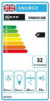 Key performance features: Energy Efficiency Class: A+ (at a range of energy efficiency classes from A+++ to D) Extraction rate according to EN 61591 ø 15 cm: max. Normal use467m³/h...
