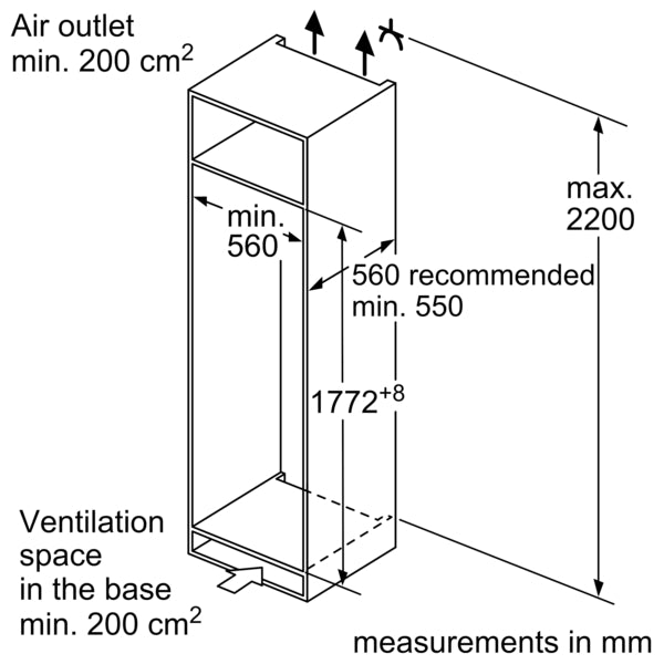 • Niche Dimensions: 177.5 cm H x 56 cm W x 55 cm D