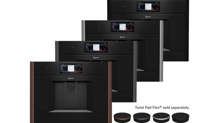Adapt your favourite appliance to match your individual style. When purchasing your coffee machine, simply choose from separately selectable side trims available in four colours and match design elements however you like. And because kitchens grow and tastes change, the choice is also flexible. With Flex Design, adaptable elements from separately selectable accessory sets can be changed as often as you like, giving each appliance a lifetime of great taste. Optional Twist Pad Flex® sold separately.