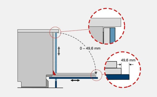 VarioHinge 50mmPerformance Energy Efficiency Class¹: E Energy² / Water³: 70 kWh / 8.5 litres Capacity: 9 place settings Programme duration⁴: 3:40 (h:min) Noise level: 46 dB(A) re 1 pW Noise...