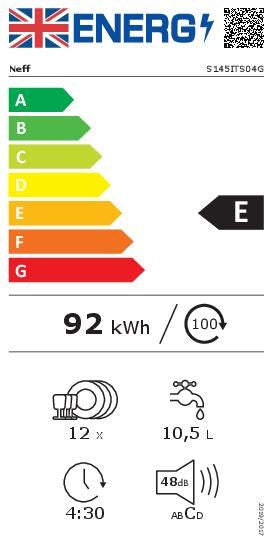 New for 2021Performance Energy Efficiency Class¹: E Energy² / Water³: 92 kWh / 10.5 litres Capacity: 12 place settings Programme duration⁴: 4:30 (h:min) Noise level: 48 dB(A) re 1 pW...
