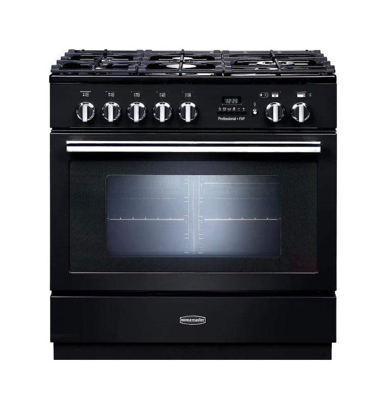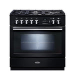 Black Rangemaster Dual fuel Range Cooker PROP90FXPDFFGB/C, this A energy rated model comes equipped with 108 litres capacity, 5 number of burners and 1 number of cavity. This Rangemaster range cooker has install dimensions of 90cm (width) x 90.5cm (height) x 60.8cm (depth). The PROP90FXPDFFGB/C model also comes with wok burner, electronic timer, Buttons/dial control panel and a manufacturer's warranty of 2 years for peace of mind.
