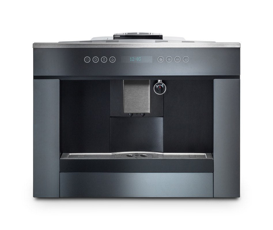 The facia of the coffee machine is finished in glass panelling for easy cleaning and a sleek, stylish appearance and it is non-plumbed. The durable stainless steel drip tray can be removed easily for emptying and cleaning. The coffee machine comes complete with a milk canister. The canister will keep its contents cool whilst the machine is in use. The coffee nozzle is adjustable to accommodate different cup sizes. It is easily manoeuvrable in an upward/downward motion. The nozzle is finished with a brushed stainless steel panel. The coffee beans/grounds container is located on top of the machine. Within, there are separate areas for beans and ground, these must not be mixed. It can use Regular bean to cup coffee (beans or pre-ground), Espresso (beans or pre-ground), Cappuccino (beans or pre-ground) and Latte (beans or pre-ground). The digital touch control panel is located above the coffee nozzle under a glass panel. When in idle, the machine will display a digital clock.