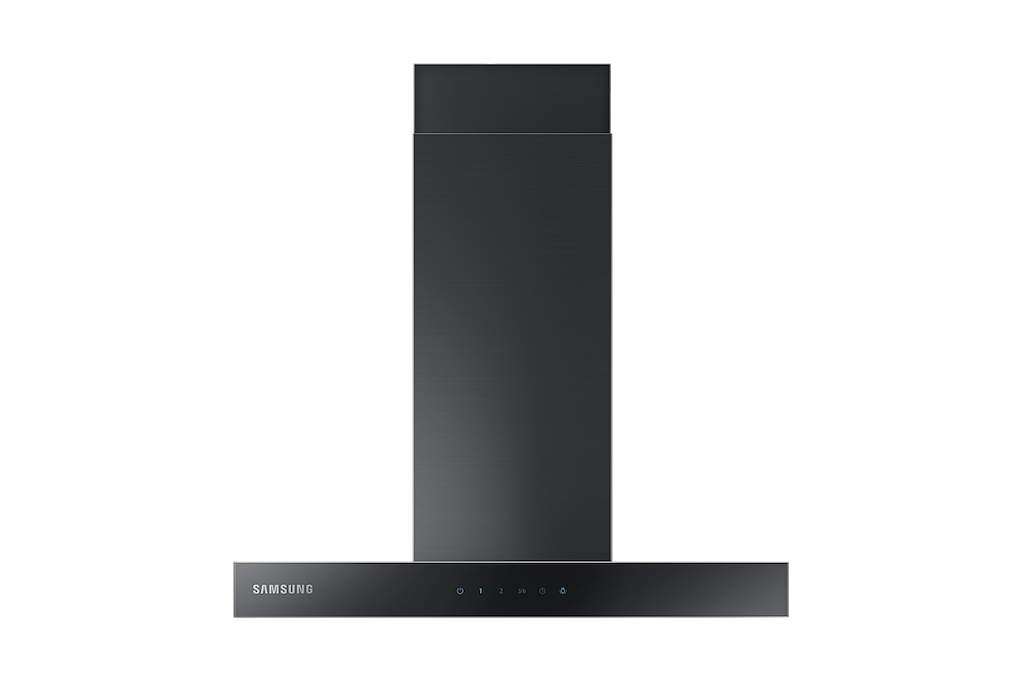 Black Samsung Chimney Hood NK24M5070BM/UR, Samsung hood has install dimensions of 64.5cm (width) x 57.5cm (height) x 37.5cm (depth) and an operating noise level of 70dB. The NK24M5070BM/UR model also comes with and a manufacturer's warranty of 2 years for peace of mind.