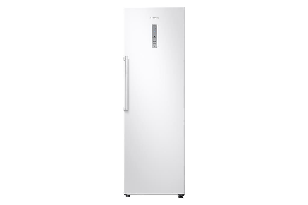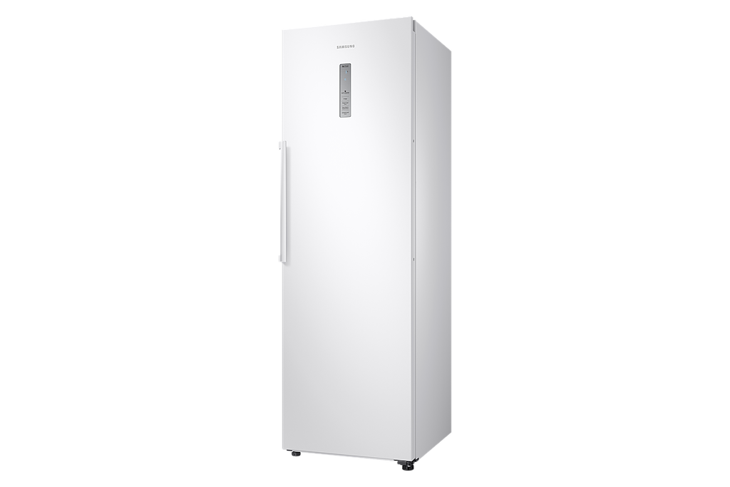 Snow White Samsung One Door Fridge. This F energy rated appliance has a refrigeration capacity of 385 litres. The Samsung RR39M7140WW/EU has 6 shelves with adjustable shelving for maximising your storage space as well as vegetable storage drawer for keeping produce fresh and cool; drinks storage; egg tray and dairy storage compartment for optimum preservation of cheese and milk products. When installing this appliance the Samsung Free-standing has dimensions of 59.5cm (width) x 188.3cm (height) x 69.4cm (depth) as well as reversible door configuration to ensure the fridge fits your kitchen conveniently and a noise level of 41dB ensuring quiet operation throughout its life cycle. Samsung provides you with a manufacturer's warranty of 5 years for added peace of mind on your new refrigerator.