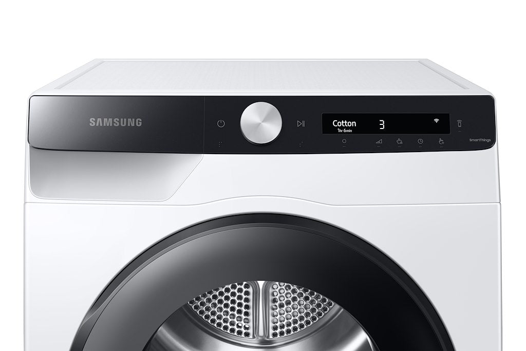 Samsung Series 5+, DV90T5240AE/S1 Heat Pump Tumble Dryer, OptimalDry™, Smart Control +, Reversible Door, Quick Dry, 2 in 1 Filter, 9 KG, White, A+++ energy rating