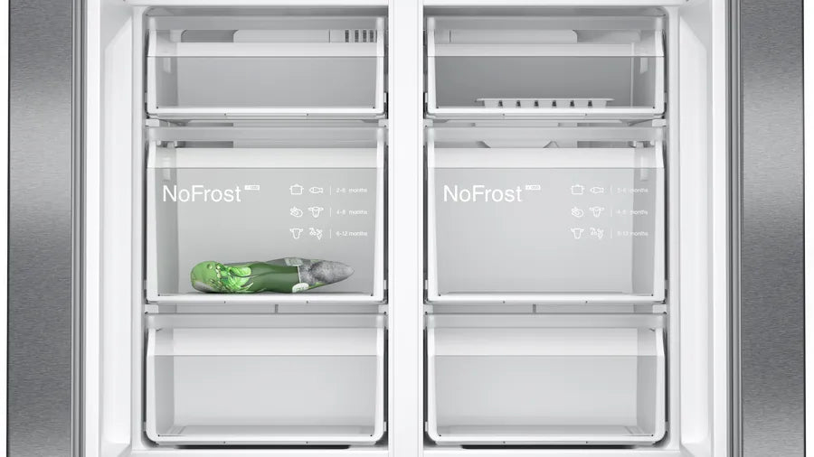 NoFrost technology extracts moisture which keeps the air in your freezer dry. This stops any frost from forming on the interior walls which saves you from the hassle of having to defrost your own freezer. This is also energy saving as NoFrost technology makes your freezer work more efficiently.