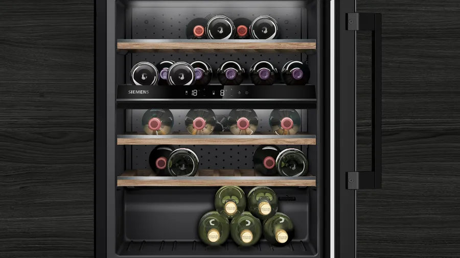 Wine storage cabinet, Built-under applianceFunctionsDesign features Optical and acoustical door open warning system Interior ventilator Automatic defrost in fridge section Design features5 PC bottle shelves for 0,75 lKey features -...