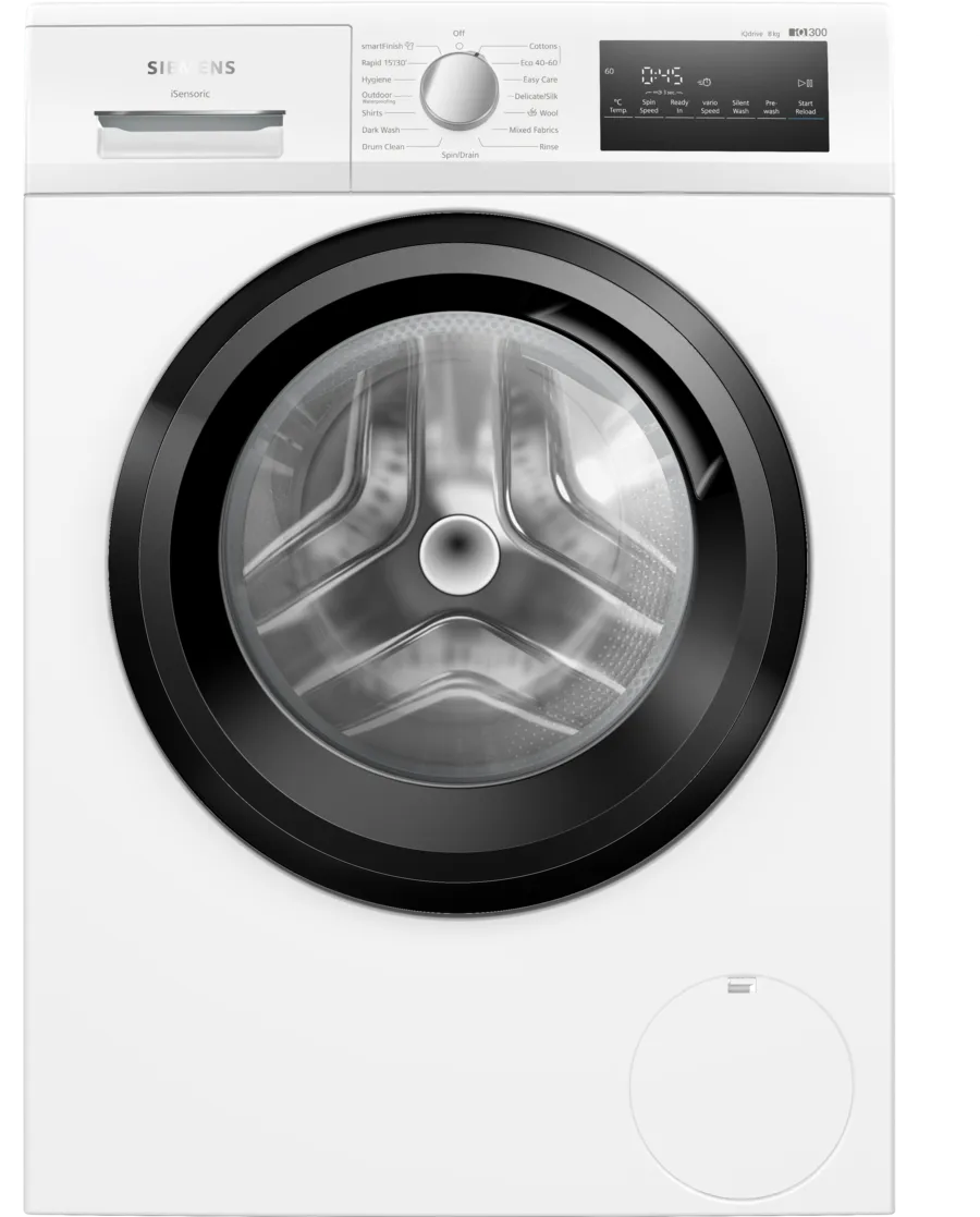 • Touch control buttons: prewash, Ready in, temperature selection, Night Wash / Silent Wash, varioSpeed, start/pause with reload function, spin speed selection